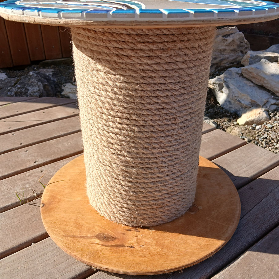 Naše kočka Nudliska si zamilovala škrabadlo, které jsem vyrobila z elektrikářské špulky. Časem se ze škrabadla stal i vyhledávaný taburet, stoleček a stolička. A protože mám znovu využívání starých věcí moc ráda (a musím přiznat, že špulky zvlášť), vznik nápad vyrobit podobné multifunkční stolko-škrabadlo ozdobené mozaikou.